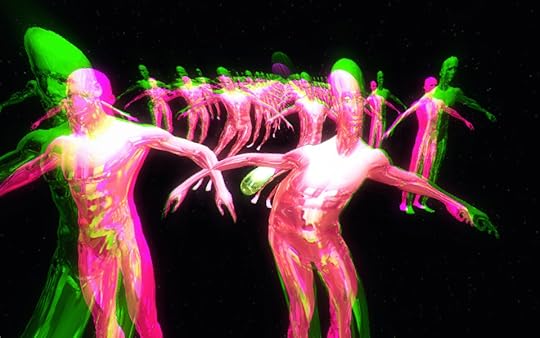 Kyttenjanae depicts loneliness and sickness in an unusual way. It's almost always as a rainbow-flavored mix of gross-out and grace. The signature animated art that she shares on her Tumblr page is recognizable for the eyeless humanoids that ebb and flow as if made of pink and polychromatic liquids. They strangle themselves and puke out their sherbert innards from mouths and arse, some hang limp out of computer monitors, or see their bodies morphed by a technological ripple of neon lacquer paint. Whatever the case, they're all forever trapped in endless torture by the looping gif format.