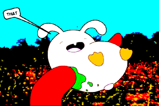 The final look has become somewhat of a signature of Lawhead’s work, the uncomfortable pixels and shredded images appearing in Monkey Fortunetell, FROGGY, and ARMAGAD. It’s something that Lawhead returns to due to her approach to digital art. “I find it funny that most image editing and art tools on a computer always try to mimic something in real life (realistic brush strokes, pencil, etc). Why fight with a computer to replicate reality?” Lawhead said. “Why not try to explore something totally unique to computers? Pixels, distortion, and tortured compression is a hallmark of digital art, so it’s interesting to see how you can make that work in a reasonable way.”