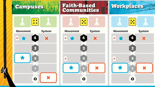 “What we really want people to take away from the game, is that just like Rise Up, movement building is a cooperative process. It’s a cooperative game, so the game is playing against you. It really requires people working together to beat the system.”