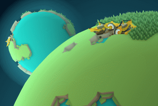 As we know all too well, humans affect our environment as much (or perhaps even more) than it affects us. These uniquely Anthropocene changes are present here as well. Three types of planets determine environment, needs, and manufacturing opportunities: Ice, Forest, and Desert.