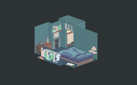 There is something, not an unease but an otherworldliness, that perpetuates the piece—a finely illustrated work that unfolds like a diorama around the subtle sounds of a cat’s purr. This unnatural/naturalness follows through in the crafting and design of the apartment and characters, the “flat-shaded colours” that call to mind a recent appreciation of Tom’s of the work of Eran Hill and the psychogeography of place. Hana points to the characters in Pan’s Labyrinth () as an influence: “you can easily familiarise yourself with the monsters to the point where their existence feels natural.”