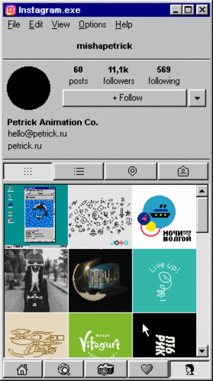 But the emulator reveals a conspicuous absence: no Instagram. Yes, Instagram only launched in 2010, and as a free mobile app rather than a Windows 95-friendly .exe program. But what if it had come into existence two decades earlier? Russian graphic designer Misha Petrick answers this burning question for all of us with Instagram for Win95.
