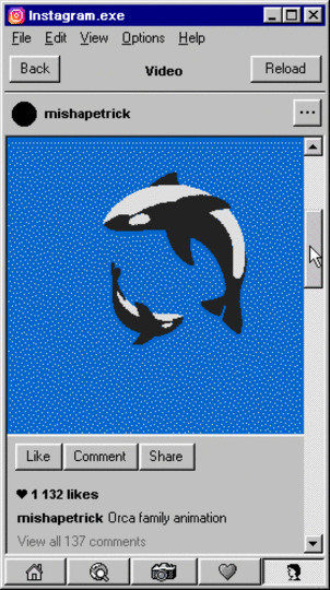Petrick also animated how it might have looked to scroll through a user’s feed and to receive notifications on new likes, comments, and followers. Limited by its ancient operating system, Instagram for Win95 is chunkier and clunkier than the real thing, but there is a beauty in that. Looking at the two side by side, it is hard not to appreciate how far we have come in the past 20 years.