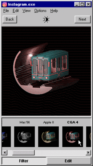 Petrick’s project explores what the app would have looked like with the 90s aesthetic that its present-day users strive for on a daily basis. His series of animations showcases what the interface would have looked like way back when, in all of its retro, pixelated glory. Painstakingly choosing a filter for your ’gram is complicated enough today, but Petrick adds another layer with 90s-themed filters such as “Apple II,” “Mac ’86,” and “1-bit.”