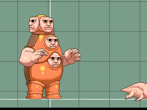 Because Oneachanchan is being developed in his spare time, daromeon says, “[character animations are] designed to have the maximum visual impact with the minimal amount of work possible.” For example, Ohjeachan uses tires and propellers to move around rather than “complex movements of legs and arms,” daromeon explains. These animations are copied, and applied to other moves.