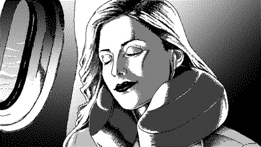 Self-taught, Dovier works in an unmistakable style, one he described to me as “stripped of unnecessary details.” First Dovier draws each frame by hand in low resolution. Then he fills in shadows with pixel grids converted in Photoshop’s bitmap mode. The end result is somewhere between “numeric and classic aesthetics like engravings,” he said, as well as the screentone process characteristic of manga.