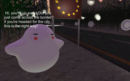 You play as an illegal immigrant. You’re confronted with a road, a single route into Europia, the fictional state found in the game. Other migrants ask you questions. “Have you seen my family?” asks one. “Have you seen my wife?” asks another. You pick up some money. It’s a five Euro coin. Everyone is walking in single file, not on the road, but to the side of it. And as you walk further down you begin to see the EU stars emblazoned on the border control. There’s a crowd milling about around it. You jump ahead of the queue and meet the border control officer. Like the building he is emblazoned with the EU stars, too. “Unfortunately we cannot process your application at this moment in time. Please understand we are very busy.” You look for another route in.