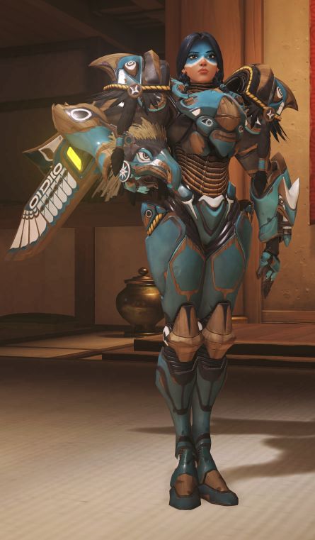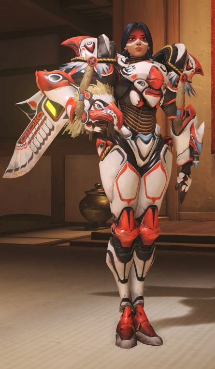 Pharah’s Thunderbird and Raindancer skins are another faulty depiction. The design of the skin’s armor, including the torso, shoulder pads, wings, and helmet denote influence from people of the Pacific Northwest—the Haida people’s totems are the best known in popular culture. Her face paint is most likely influenced by the Mohawk people in Ontario, Quebec, and upstate New York. This is another example of traits from different groups thrown together without regard for their origins. Furthermore, the theme of Pharah’s alternate skin is the only place Native American culture appears in Overwatch.