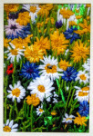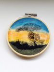 Then, about four years ago I decided to try to do a tapestry the way I paint with acrylics. Free, lots of building layers and colour, slapdash, bright, cheerful and joyful. I didn’t bother with the set types of stitches because I can’t retain them and I don’t understand why you have to keep to straight lines just because the canvas is a grid. I started small. A lot of things didn’t work but some did. And I got better – am still getting better, I hope. Most importantly, though, is the feeling that I’m creating something on my own terms, something that gives me pleasure, and something that feels organic, not prescribed.