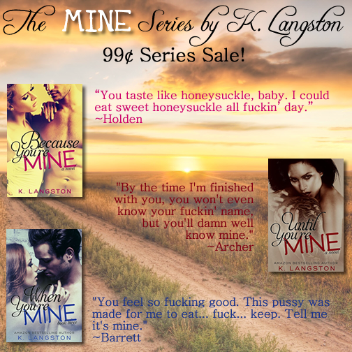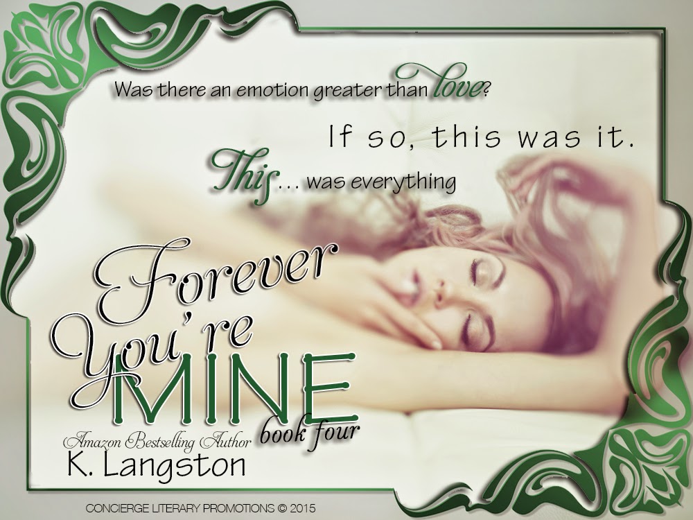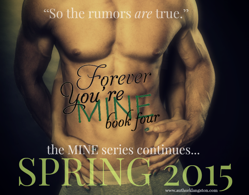 Meet me back here Thursday, January 8th where I shall reveal the gorgeous cover for the fourth book in the MINE series, Forever You're Mine designed by the talented K23 Photography & Design.