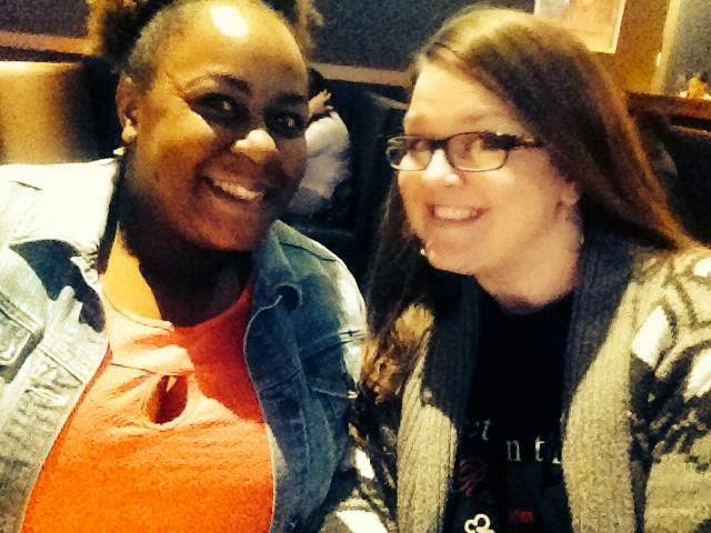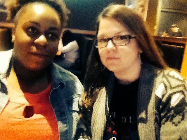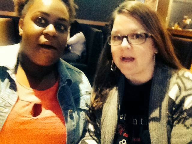 Me and my chocolate sister trying to figure out my daughter's selfie stick.