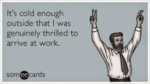 So, anyways, I'm here at work about to start the day. I have my little heater on and my super warm fleece on from work.