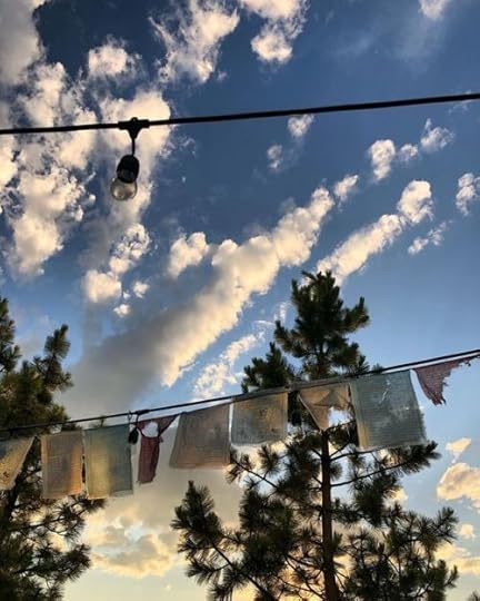 When it comes to front porch views, this ain’t a bad one to call home. Holy bee nanas. Vanilla skies and prayer flags and a glowing sunset and a zephyr trickling in from the West.