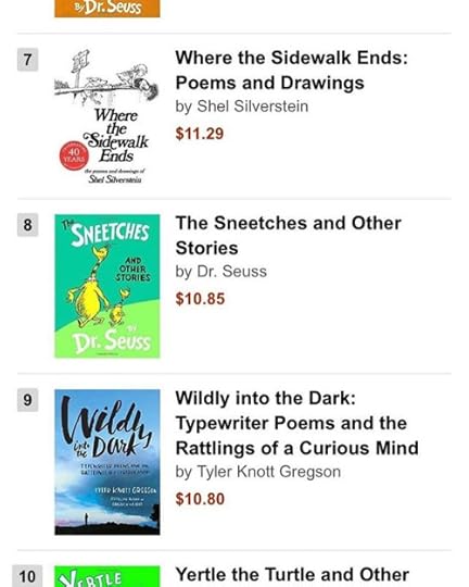 In what parallel world could I possibly share space on a best sellers list with Dr. Seuss and Shel Silverstein? This is all you, you wonderful people who support me. You amazing friends I cannot wait to meet. You beautiful supporters of art, of a creative life, of poetry. I love you all. …
