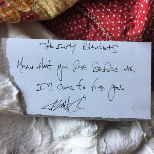 “The empty blankets mean that you rose before me. I’ll come to...
