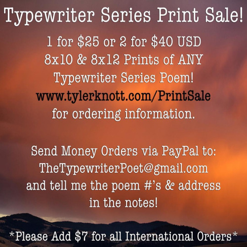 Your wish is my command. The Typewriter Series Print Sale is back on. Details on how to order signed prints of any of my Typewriter Series poems are on the picture or here: tylerknott.com/PrintSale