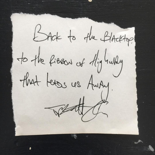“Back to the blacktop, to the ribbon of highway that leads us...