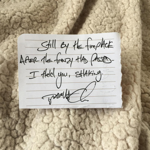 “Still by the fireplace after the frenzy had passed. I held you,...