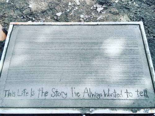 Poured the bottom concrete pad that will hold the stairs that lead into my house yesterday. This line from one of my Typewriter Series poems was scratched in with an old nail to christen it. Every set of feet that walk up it will touch these words, every set of eyes will know. There is poetry in every inch of this thing we have built, hiding, waiting, and holding tight.