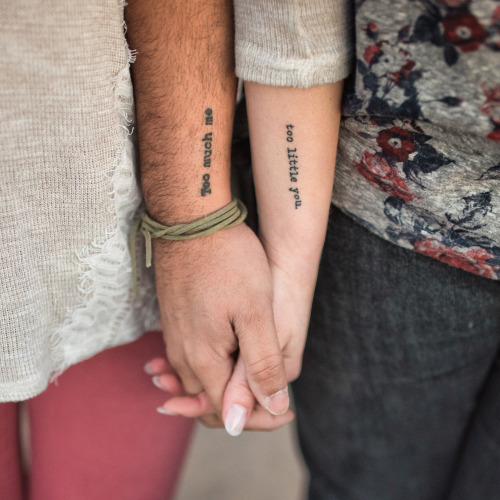 As you know by now, I Love tattoos. I have more than I can count and I know I will get many more. What I Really love and still cannot quite understand is how many of you lovely folks have chosen to tattoo my words on them. I absolutely love seeing them and feel so lucky when you share them with me. Here is @whoisslikehim and his fiancée with one, and I love the idea and how it turned out. The photo was snapped by @leahnicolepix