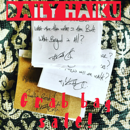 So, until they run out, I am going to do a random grab bag sale of the actual original handwritten haiku. They will be 3 for $45 or 5 for $55. To order send a money order through PayPal to: thetypewriterpoet@gmail.com. Please add $5 for any orders outside the USA. I will then send the original, one of a kind, handwritten haiku, chosen at random, to where you tell me in the notes of your order. :)