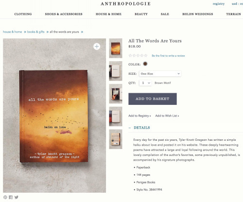 My rad friends over @anthropologie are now carrying All The Words Are Yours as well as Chasers of the Light! I woke up to seeing this little bugger on their website and its in stores as well which is groovy. So now, if you are out and about and stop by an @anthropologie you can gobble up both little books. Fun stuff folks :) Head in and if you spot it snap a pic for me!?