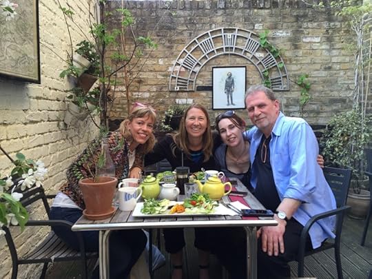 BELOW: That night's mini Vienna reunion in London. You can see my favorite jacket in action (cool, huh?) and Anna, Lucy, and Jeremy Osborne, all eager to hear Vanessa Gebbie do a reading in Notting Hill.