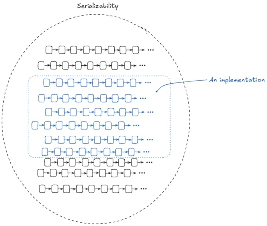 pred AnomalySerializableStrict { not A1 not A2 not A3}/** * A1: w1[x]...r2[x]...(a1 and c2 in any order) */pred A1 { some T1 : AbortedTransaction, T2 : CommittedTransaction, w1: Write & events[T1], r2 : Read & events[T2], a1 : Abort & events[T1] | { w1->r2 in teo r2.sees = w1 // r2 has to happen before T1 aborts r2->a1 in teo }}...And then we can ask Alloy to check whether AnomalySerializableStrict implies Adya’s definition of serializability (which he calls isolation level PL-3).