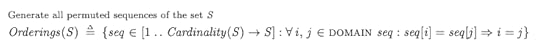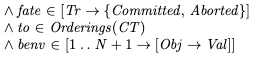 TLA+ is untyped (unless you’re using Apalache), but we can represent type information by defining a type invariant (above, called TypeOkS). Defining this is useful both for the reader, and because we can check that this holds with the TLC model checker.