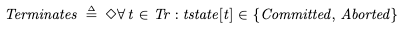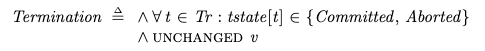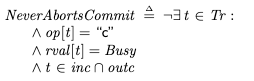 Aborted commitSimilarly, we can use the model checker to identify scenarios where it a commit would fail, by specifying the following invariant: