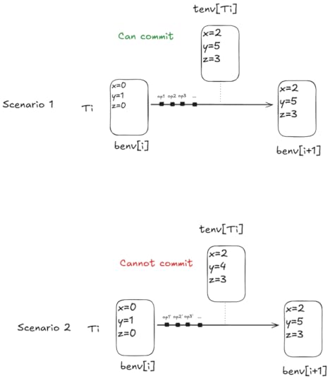 In our original MVCC implementation, reads and commits always succeeded. Now, it’s possible for an attempted read or an attempted to commit to result in aborts as well, so we needed an action for this, which I called AbortRdS.