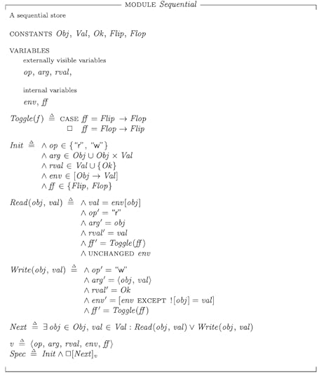 INVARIANT MutualExclusion OnlyWaitUnderContention NoneStuckPROPERTY ImplementsMutexYou can find my repo with these models at https://github.com/lorin/futex-tla.