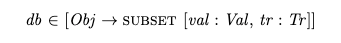 // transactions.alsabstract sig Predicate {}abstract sig PredicateRead extends Event { p : Predicate, objs : set Object}// adya.alssig VsetPredicateRead extends PredicateRead { vset : set Version}sig VsetPredicate extends Predicate { matches : set Version}A predicate read is a read that returns a set of objects.