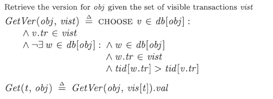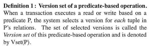 In Adya’s model, a predicate read takes as input a version set (a version for each object) and then determines which objects should be included in the read based on whether or not the versions match the predicate:
