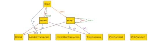 objectstransactions (which can commit or abort)events (read, write, commit, abort)The diagram below shows some of the different entities in our Alloy model of the paper.