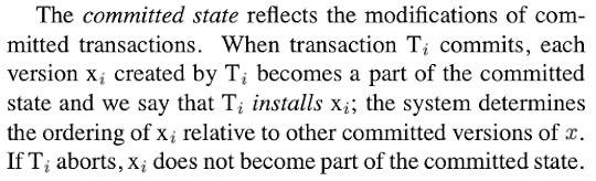 The paper introduces the concept of a version of an object. A version is installed by a committed transaction that contains a write.