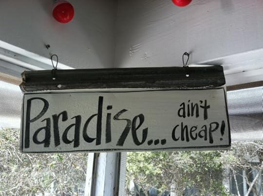 “Paradise Ain’t Cheap”– I felt sure it had been hung there as an ode to beach living.