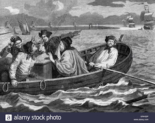 After that, he created more works. Some were paintings of the well-to-do. But he increasingly leaned toward images of London itself, with its drunks, prostitutes, madmen and street children. One work, “The Enraged Musician,” is visual image of the sounds of the city. While a well-to-do violinist tries to practice his craft, he is enveloped by street noises. A milkmaid calls her wares, a coachman blows his horn, a knife sharpener works his grindstone, a homeless woman with a baby sings in hopes of earning a few coins. These were probably the sounds Sam Bellamy heard as a boy.