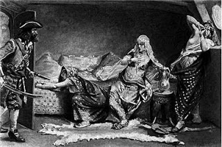 In the play, Avery goes under the name Arviragus, and has made himself a King in Madagascar, the legendary east-African pirate island. He captures the Indian princess Zaida and tries to force her to marry him, but she is in love with a young man named Aranes. The two have an offstage fight and Aranes is reportedly killed; meanwhile, De Sale, who has confided to the audience that he is plotting to overthrow Arviragus and become King, ingratiates himself with Zaida.