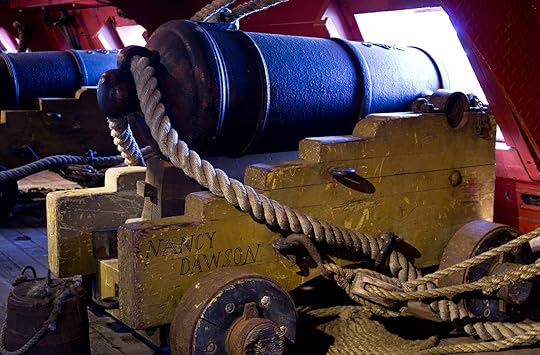 In some ways, this accounts for the hodge-podge look of a pirate ship and a pirate crew. When a new ship was being fitted out, the builders would buy all the cannons from the same foundry, and therefore all of them would look much the same. But a pirate crew amassed its weaponry from a number of sources – stealing a cannon here, a brace of pistols there… So each piece would look quite different.