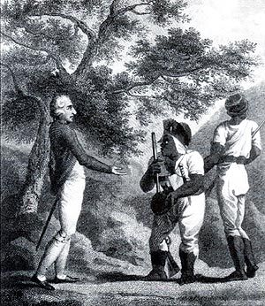 Captain Cudjoe negotiating with the BritishAnother famous – some would say legendary – Maroon leader is the woman know as Nanny, also called Queen Nanny. She is today a folk hero, the only woman listed as one of Jamaica’s National Heroes. Legends say that she was a citizen of a Ghana, Africa, whose entire village was captured in an intertribal war and sold to the Europeans.