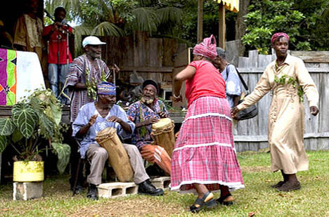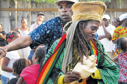 2012 Mama G, a Maroon spiritual leader, dances with a young man