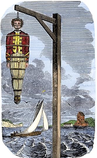 His backers, still terrified that he would implicate them, made sure that on the day of his execution, Kidd was too drunk to speak, or even to stand. He was hauled bodily to the scaffold. But when he was dropped, the rope broke. Another rope was quickly put up, and William Kid was hanged by the neck until dead on the 23rd of May 1701. According to custom, his body was then covered in tar and left on display, as a warning to other pirates.