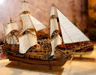 Model of the Queen Anne's Revenge - notice how much rope.In contrast, the standard battle ship of the Napoleonic wars was the “74”. These ships averaged 180 feet long and 46 feet wide, and rated 2,000 to 3,000 tons. The “74” stood for the number of cannons. Crews regularly included 700 men.This made the navy ship of the later era 10 times as big as the most fearsome pirate vessel of all times, with nearly twice the armament. Large navy ships might carry as many as 110 guns.