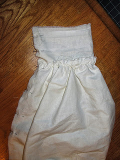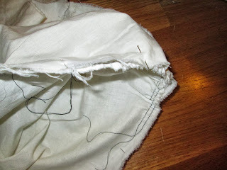 Sew a gathering seam all along the back of the neck hole, from shoulder to shoulder, and draw in the backof the neck.