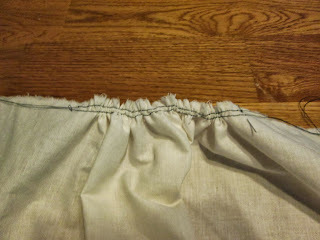 On the opposite side, sew another gathering seam, 12" long, centered on that side.