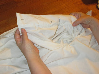 Gather the top of each sleeve, using the 12" gathering seam inserted in step 3
