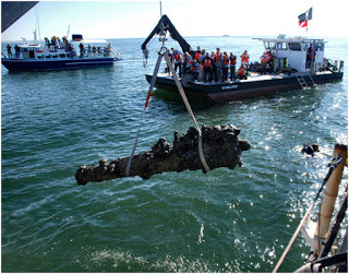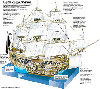 Blackbeard sailed up the coast for North Carolina. The wreck of Blackbeard's flagship, the Queen Anne's Revenge, has since been discovered. Investigators have found what may be the contents of the medicine chest. Items include a urethral syringe (used to treat syphilis), pump clysters (used to provide enemas), a porringer (possibly for bloodletting), and a brass mortar and pestle for preparing medicine. Legend has always said that Blackbeard was looking for medicines and equipment to treat syphilis, likely caught by cavorting with prostitutes.