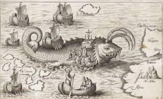 Blank places on maps were also artistically undesirable. When the map maker was describing the true outer limits of European exploration, and the lines just ended in some regions, the map looked incomplete. (Because it was.) So, relying on the art of cartography, map makers offered up pictures of exotic fish and animals.