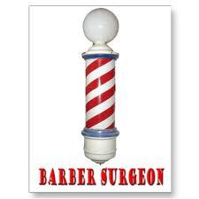 In fact, the image of the barber pole – that rotating red-and-blue striped pole outside old fashioned barber shops – is said to represent an arm being cut open so that the blood ran down.